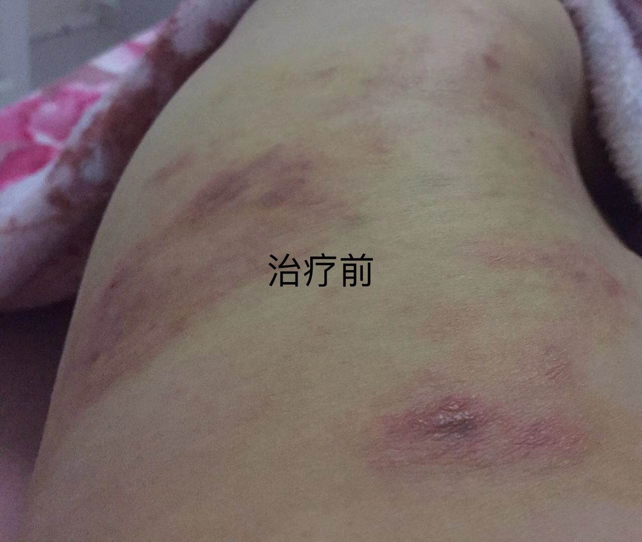 主诉:左侧腰部皮疹伴瘙痒10+天。