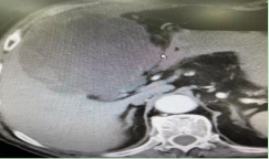 辅助检查:BNP正常。2022-10-15 腹部脏器(常规):肝内混合回声团:肝脓肿?请结合临床。2022-10-16 上腹部CT(平扫,增强扫描):肝右叶团块影,考虑感染性病变(大小约12.0*10.5*9.6cm)。