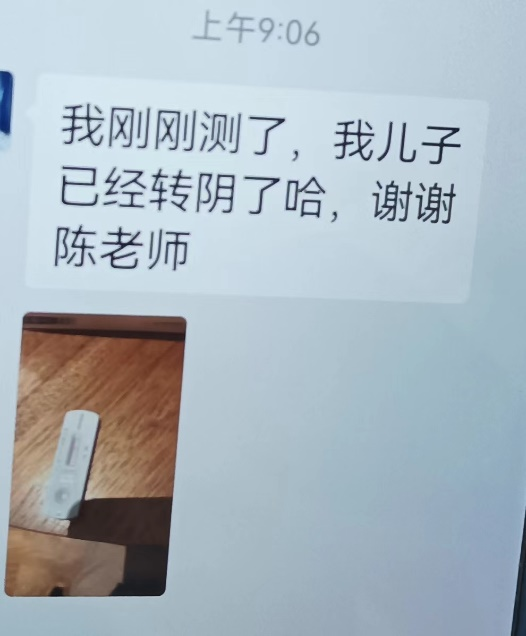 12月13日早晨反馈诉体温平稳无发热,偶有鼻塞鼻涕,抗原已经转阴。