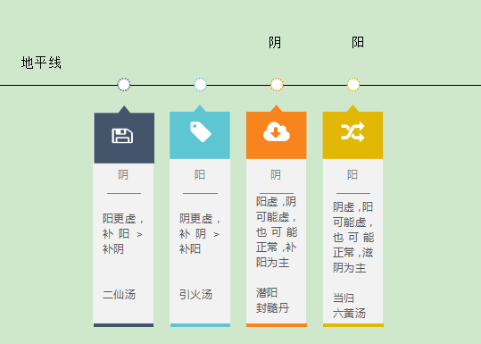 汗证在中医中指汗液排泄异常,包括自汗、盗汗、战汗、绝汗等,主要与阴阳失调、腠理不固有关。如果把阴阳平衡的状态比作地平线的话,二仙汤是一个阴阳均在地平线之下的方,重在温肾阳、补肾精、泻肾火,调理冲任,是一个阴阳双补的方剂;潜阳封髓丹(砂仁、附子、龟板、甘草、干姜、肉桂、黄柏)重在扶阳,主治虚火上浮、肾阳不足导致的一系列临床症状,其阳在地平线之下,阴可能在地平线之下,也有可能正常;当归六黄汤(当归、生地黄、熟地黄、黄连、黄芩、黄柏、黄芪)治疗阴虚火旺、逼津外泄的汗证,其阴在地平线下,其阳可能在地平线下,也有可能正常,方中黄芪当归还有补血之功,汗血同源,可以弥补一些流汗过多导致的汗液亏虚;而引火汤是一个滋阴为主,引火归元为辅的方剂,也就是阴和阳均在地平线之下。从阴阳不足以地平线为准的量化关系来讲,引火汤和二仙汤最相近,均在地平线之下,但细细再比较二方,二仙汤方药仙茅、仙灵脾、当归、巴戟天、黄柏、知母,以补阳为主;引火汤中熟地黄、麦冬、五味子以滋阴为主,更符合绝经后妇女,肝肾阴亏较甚的生理特点,师傅也正是考虑到这一点使用了引火汤,一剂而引火归元,真是妙哉妙哉!!!现把四方归纳如下: